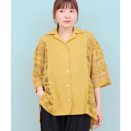 サラッと涼し気な印象のコットン×レースシャツ