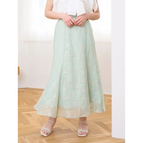 ラメの入った花柄刺繍が華やかな印象を与えるマーメイドスカート。
