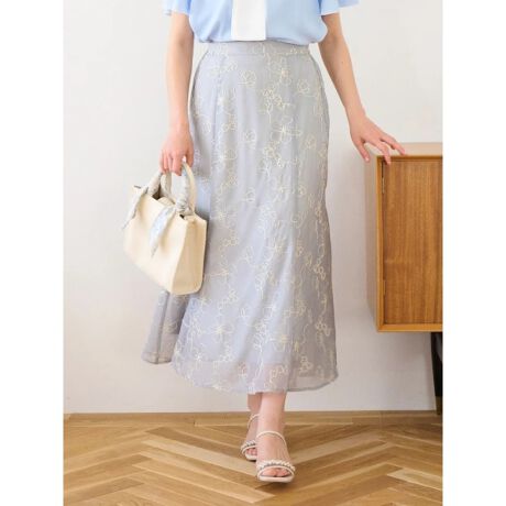 ラメの入った花柄刺繍が華やかな印象を与えるマーメイドスカート。