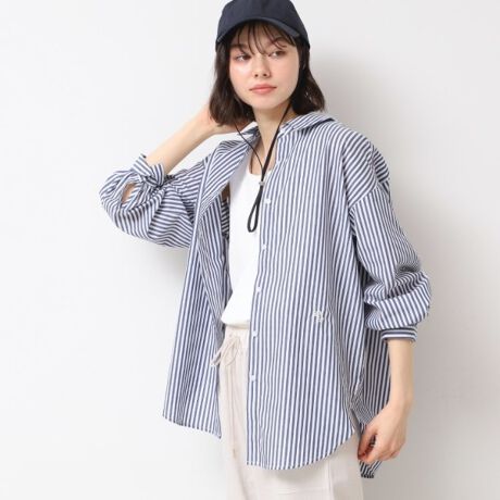 【洗える】ロゴ刺繍入りストライプオーバーシャツ