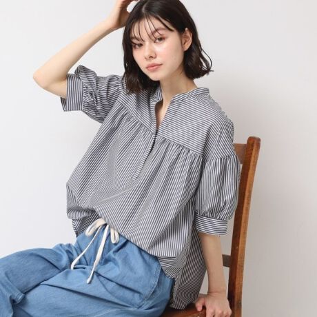 スキッパー襟が顔周りをすっきりと見せてくれます。