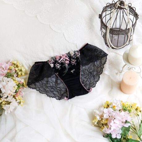 後身生地は総レースになっており、伸縮性のあるレースが肌に心地よくフィットします。足口にはゴムを使っていないので食い込まず、少しゆとりをもった履き心地です。ボトムスへもショーツラインが響きません。