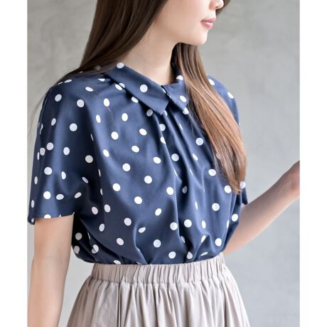 軽快なドットがスタイリングのポイントになるブラウス。