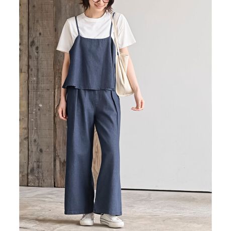 デニムパンツにオーバーキャミをセットしたトータルコーデが楽しめる一品。