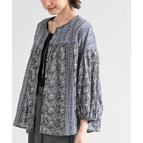 エスニックなプリントが夏を盛り上げてくれるブラウス。