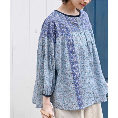 エスニックなプリントが夏を盛り上げてくれるブラウス。
