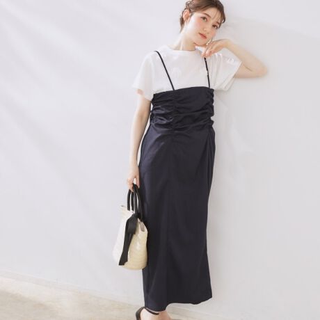 胸元にシャーリングデザインが入った、トレンド感のあるキャミワンピース。