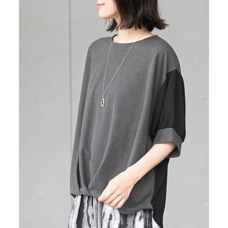 ネックレス付き異素材切替裾タックプルオーバー