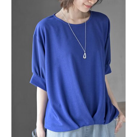ネックレス付き異素材切替裾タックプルオーバー