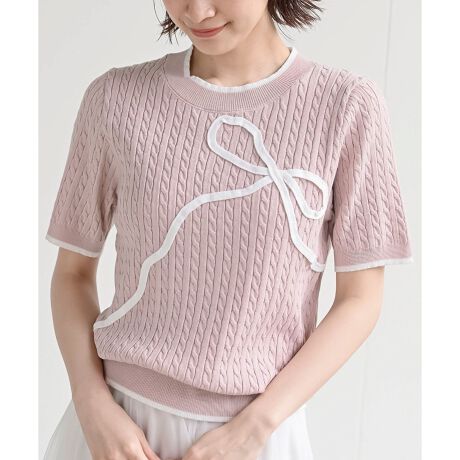 リボンコードが存在感を放つフェミニンニット