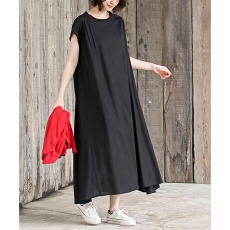 なめらかでひんやり感もあるレーヨン素材のワンピース。