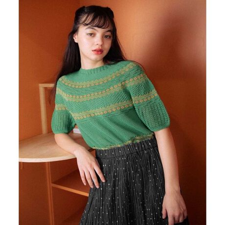 ジャカードと編み柄が引き立つよう、シンプルなボトムとのコーディネートがオススメです。合わせるアイテムを変えてカジュアルからきれい目まで、アレンジをお楽しみください。