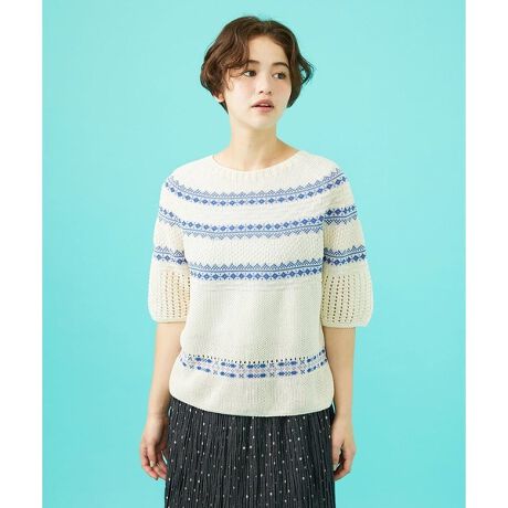 ジャカードと編み柄が引き立つよう、シンプルなボトムとのコーディネートがオススメです。合わせるアイテムを変えてカジュアルからきれい目まで、アレンジをお楽しみください。