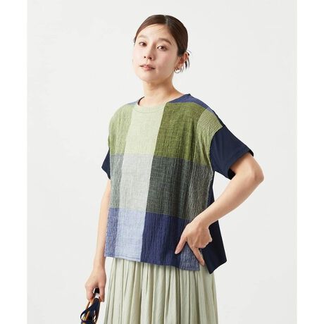 [洗える・日本製]コットンレーヨンランダムチェックブラウスカットソー