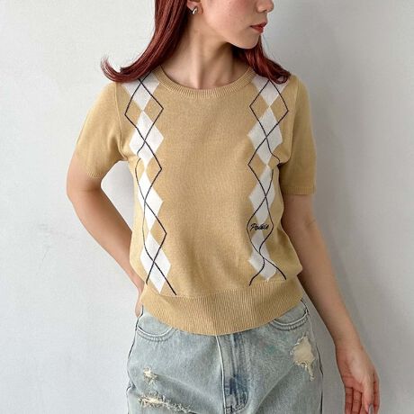 着映えするアーガイル柄と、さりげなく入った刺繍がポイント!