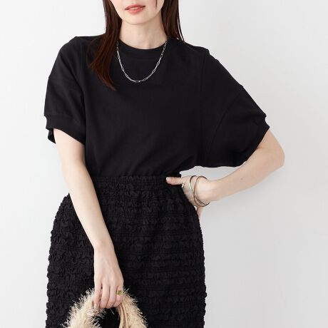 シンプルで着回し力の高さがありながらも、程よいデザインが効いた、万能トップスです。