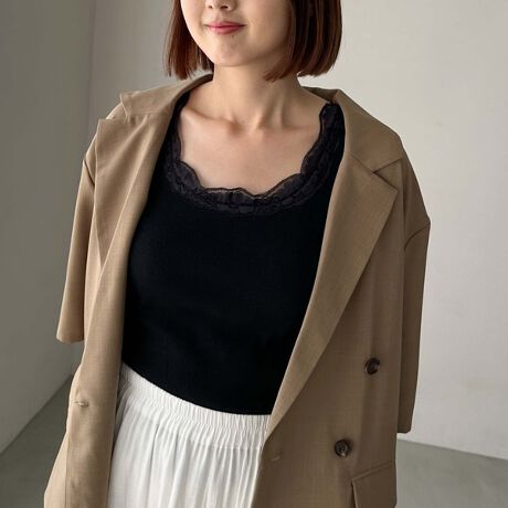 シャツや首が広く開いたトップスからレースを見せる着こなしがおすすめ。