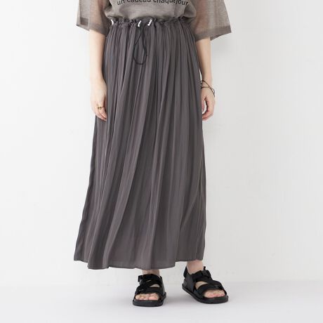 柔らかくとろりとした風合いのサテンを使用した、ギャザースカート。