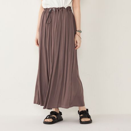 柔らかくとろりとした風合いのサテンを使用した、ギャザースカート。