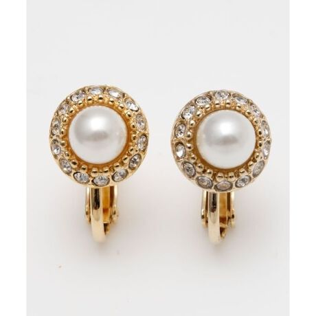 キラキラとしたビジューがお顔周りを華やかに魅せてくれるイヤリング。小ぶりで上品なデザインなので、パーティーシーンにもおすすめです。