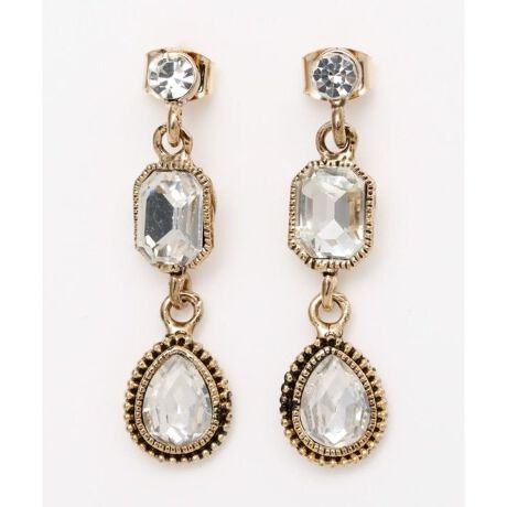 [型番:LKXZ5654-2025]きらりと輝くビジューがレトロな印象のピアス。アンティークのような風合いで、コーディネートを引き締めてくれます。