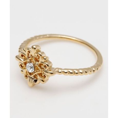 レトロな透かし模様が華やかなリング。きらりと輝くジュエルがはめ込まれていて、指先を明るく華やかに演出します。
