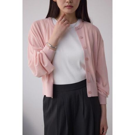 ■シアークルーネックカーディガン■ポイントさらっとした風合いのシンプルなシアーカーディガン。■ディティール程よいゆとりのあるシルエットにコンパクトな丈感でトレンドライクなバランスに。シンプルなクルーネックデザインに、釦ホールと付け糸を配色にしてさりげないアクセントにしました。目を引く豊富なカラー展開もポイントです。■スタイリングコンパクトな丈感なので、ワイドパンツやギャザースカート等ボリューム感のあるボトムと相性良く着用いただけます。ほどよい透け感もあり、プリントTシャツ等をインナーにしたレイヤードもおすすめです。肩掛けやたすき掛けでコーディネートのアクセントにするのもおすすめです。■生地繊細なシアー素材をハイゲージで編み立てた素材です。透け感:あり裏 地:なし伸縮性:あり光沢感:なし[注意事項]※画像の商品はサンプルです。実際の商品と仕様、加工が若干異なる場合があります。※画像の商品は光の照射や角度、お使いのモニター環境により、実物と色味が異なる場合がございます。※着用、お取り扱いの際は、アテンションタグをご確認ください。