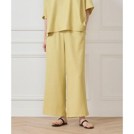 リラックス感が漂うワイドシルエットのパンツです。ウエストはゴム仕様、内側にドロストが通してありサイズ調整が可能です。着脱もしやすく、ストレスフリーな穿き心地です。麻調のさらりとした素材感で快適にご着用いただけます。シワになりにくいイージーケア性も嬉しいポイントです。・水洗い可・裏地なし■サンプル撮影商品■こちらの商品はサンプルでの撮影となっております。実際の商品とは、サイズや色味、素材、デザイン等の仕様が若干変更になる場合がございます。