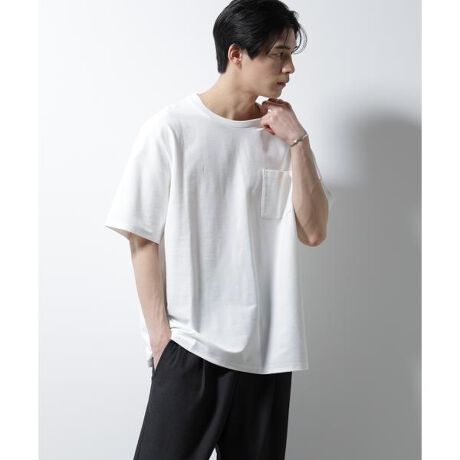 表面がツイル調で程よいカジュアル感を演出したポケットTシャツ。吸湿拡散性が発汗時でも肌離れが良く、快適な着用を可能にするアイテムです。