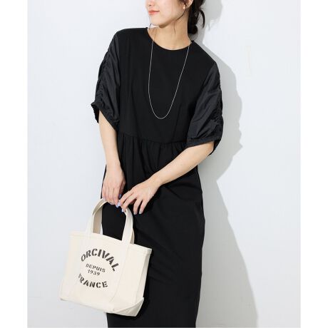 ・コンシャスな袖のデザインが目を惹く、ギャザーワンピース。