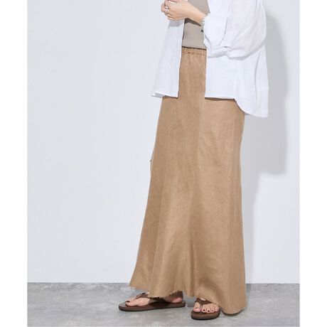 切りっぱなしの裾でカジュアルなニュアンスもプラスしています。