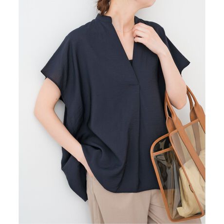 首回りがきれいに見えるスキッパーネックがポイントのブラウス。