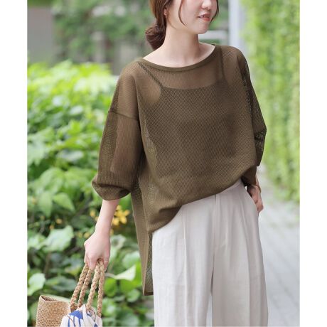 全体がメッシュになったデザインで、タンクトップなどに羽織るだけでトレンド感の強いヘルシーコーデに。