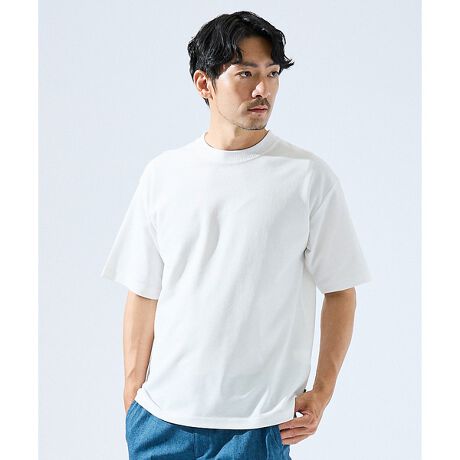 程よくリラックスした大人も着用しやすいシルエットに仕上げました。 胸ポケットを無くすことにより、ジャケット合わせなどのスタイリングから カジュアルなスタイリングまであらゆるシーンで着用いただけます。 ネックのリブのジャガード編みや裾のピスネームが目を引くポイントです。