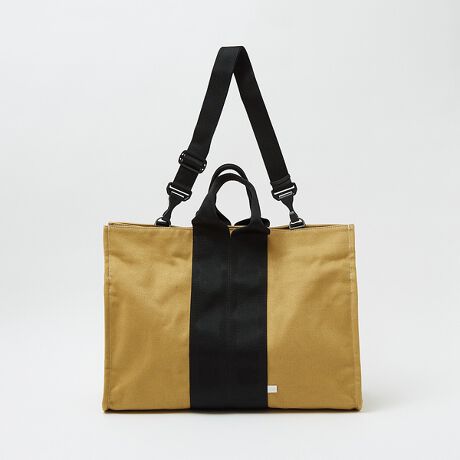 継続的にリリースしている“70mmテープ”を使用した特徴のあるデザインのトートの登場です。フロントに配置されたハンドルは70mmの極太のベルトを使用することでデザインのアクセントにしています。デザイン性だけでなく、この極太テープが芯材の役割もはたしており、強度も抜群です。また底鋲もついているので、カジュアルな雰囲気を持ちつつ、きれいさも持ち合わせているデザインといえます。シンプルでありながら個性を感じさせる新作Duffle 2way トートボストンバッグ。しっかりとしたコットン素材を使用しつつ、テープとの絶妙な配色で重くならない雰囲気が魅力的です。特徴的なテープの使い方がデザイン性を高め、機能性と美しさを両立しています。ユニセックスなデザインなので、どんなスタイルにも合わせやすく、男性・女性問わず使えるアイテムです。内装には抗菌生地を使用し、オリジナルロゴ入りの裏地がさりげなくアクセント。調整可能なショルダーベルトで、スタイルに合わせて使える、普段使いにぴったりのトートショルダーです。