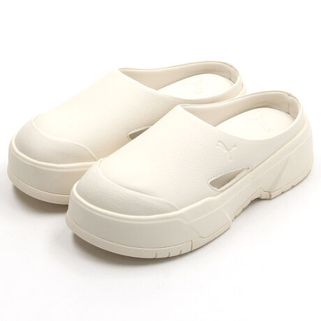 足入れが楽で履きやすいスリッポン構造で、リラックスした雰囲気の一足です。タンブル合成アッパーと、ワンポイントのプーマキャットロゴ入り。厚底のシルエットながら軽量で快適な履き心地を提供するCMEVAを使用し、履き心地がよく、夏のお出かけやレジャーにぴったりのアイテムです。
