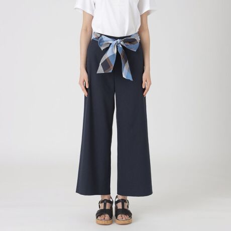 ◆太めのクレストブリッジチェックリボンがポイントのワイドパンツ