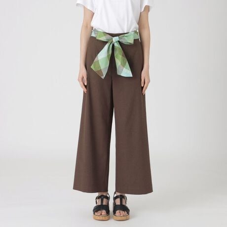 ◆太めのクレストブリッジチェックリボンがポイントのワイドパンツ