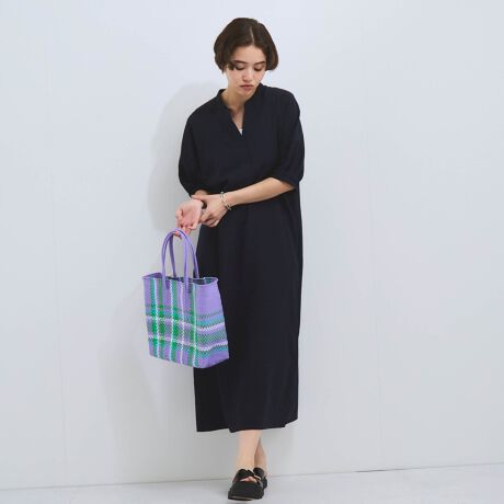 程よく深さのあるキーネックデザインが涼し気な印象に仕上げるワンピースは