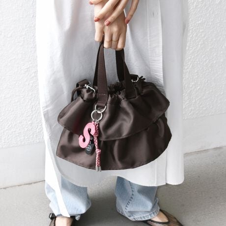 トレンドのチャームがセットになった大人可愛い巾着ショルダー