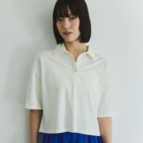 オーセンティックな印象のポロシャツをボクシーなフォルムでモード風にアップデートした一枚です。