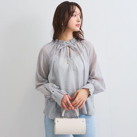 シアーコードストライプギャザーブラウス≪セットアップ対応/手洗い可能≫