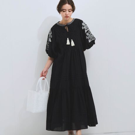 関連ワード:VICKY ビッキー レディース 新作 大人カジュアル 大人コーデ 2025春夏 2025SS 春夏 夏物 夏服 バルーンスリーブ ワンピース 刺繍 ステッチワーク タッセルコード