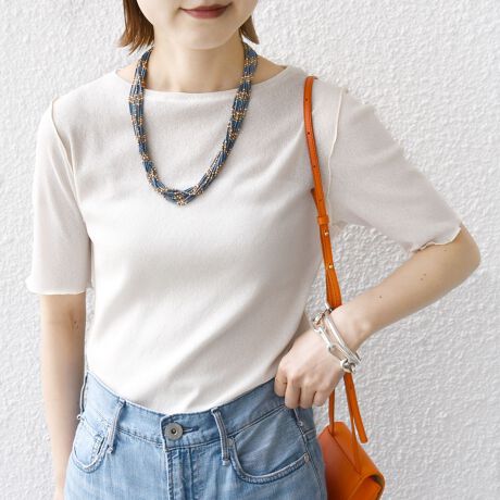 ネックは若干開きを付けているため顔周りがすっきりと見え、暑い夏も涼し気な印象に。