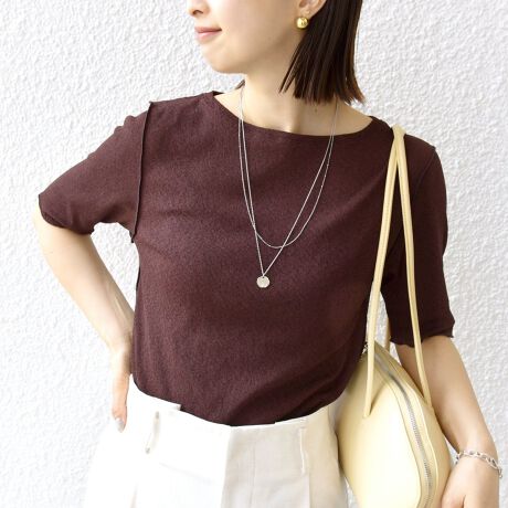 ネックは若干開きを付けているため顔周りがすっきりと見え、暑い夏も涼し気な印象に。