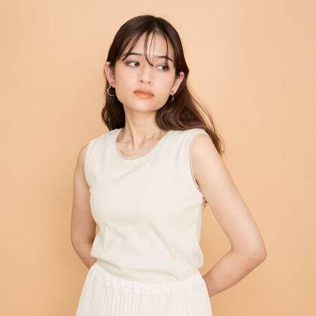 関連ワード:QUEENS COURT クイーンズコート レディース 新作 フェミニン 大人コーデ 通勤 2025春夏 2025SS 夏 夏服 タンクトップ ポリエステル レーヨン ナイロン 無地 ノースリーブ