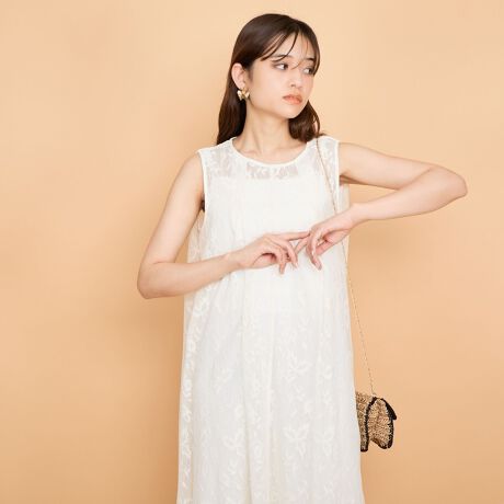 フラワー柄のラッセルレース生地を使用したノスタルジックなノースリーブワンピースです。