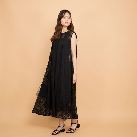 フラワー柄のラッセルレース生地を使用したノスタルジックなノースリーブワンピースです。