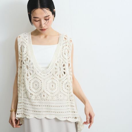 長いシーズン楽しんでいただける細番手の糸で編み上げたクロシェニットベストです。