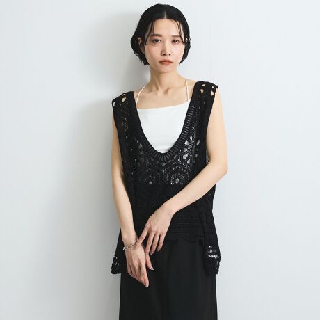 長いシーズン楽しんでいただける細番手の糸で編み上げたクロシェニットベストです。